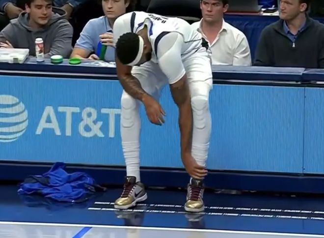 小牛队本场比赛付出的代价也不小,他们的核心内线“浓眉哥”安东尼-戴维斯又受伤了。在首节比赛只打了不到7分钟,浓眉哥就突然感觉腿部不舒服,在回防的过程中步履蹒跚,最终是叫了一个暂停,在场边坐了下来,还摸了一下自己的左脚踝。
